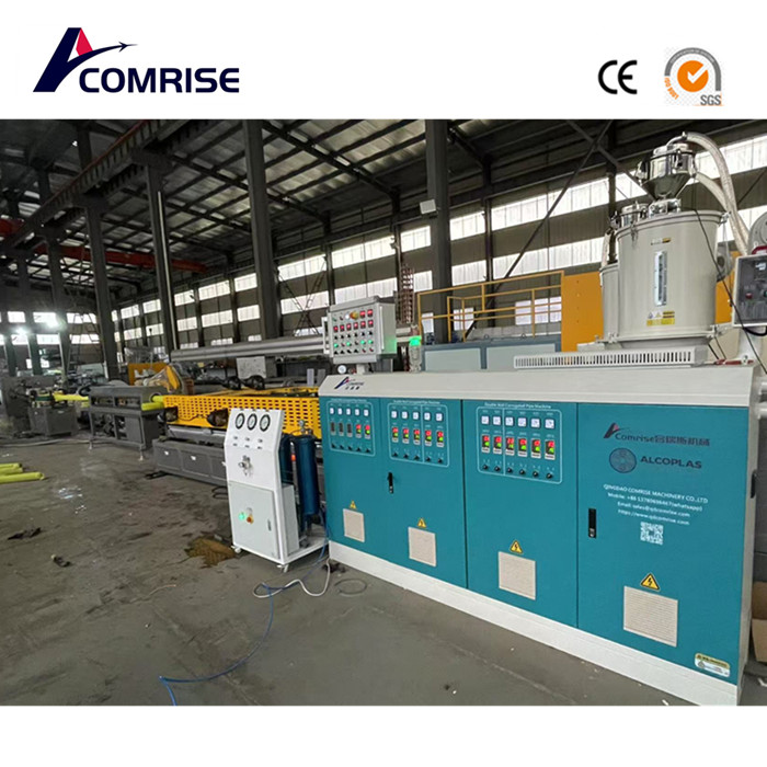 అధిక వేగం మరియు అధిక-దిగుబడి సింగిల్ స్క్రూ ఎక్స్ట్రూడర్లు పెద్ద ఎత్తున స్థిరమైన ఎక్స్ట్రాషన్ను సాధించడానికి వృత్తిపరంగా రూపొందించిన ముడతలు పెట్టిన పైపు ఎక్స్ట్రాషన్ అచ్చులతో సరిపోలుతాయి;