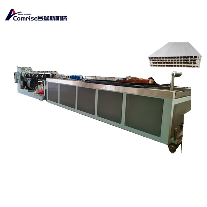 పివిసి డోర్ ప్రొడక్షన్ లైన్ ప్రధానంగా పివిసి ప్లాస్టిక్ ప్రొఫైల్లను వేర్వేరు క్రాస్ సెక్షనల్ ఆకారాలు మరియు ఎత్తులతో ఉత్పత్తి చేయడానికి ఉపయోగిస్తారు. పివిసి ప్రొఫైల్స్/ప్యానెళ్ల ఉపరితలం నిగనిగలాడే ఆయిల్, హీట్ ట్రాన్స్ఫర్ ప్రింటింగ్ లేదా లామినేషన్తో ప్రింటింగ్ మరియు పూత ద్వారా చికిత్స చేయవచ్చు, వీటిని వంటశాలలు, బాత్రూమ్లు, బాల్కనీలు మరియు మరెన్నో ఉపయోగించవచ్చు.