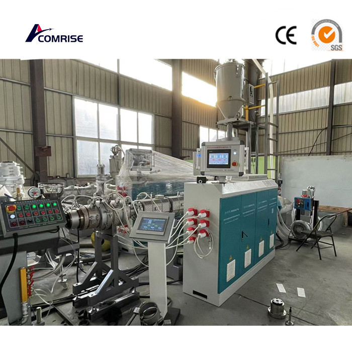 సింగిల్ స్క్రూ ఎక్స్ట్రూడర్ → కలర్ స్ట్రింగ్ మరియు మల్టీ-లేయర్ కో ఎక్స్ట్రూడర్ → అచ్చు → వాక్యూమ్ కాలిబ్రేషన్ ట్యాంక్ → స్ప్రే శీతలీకరణ నీటి ట్యాంక్ → హాలింగ్ → డస్ట్ రిమూవర్ లేదు → స్టాకర్ → తుది ఉత్పత్తి తనిఖీ మరియు ప్యాకేజింగ్